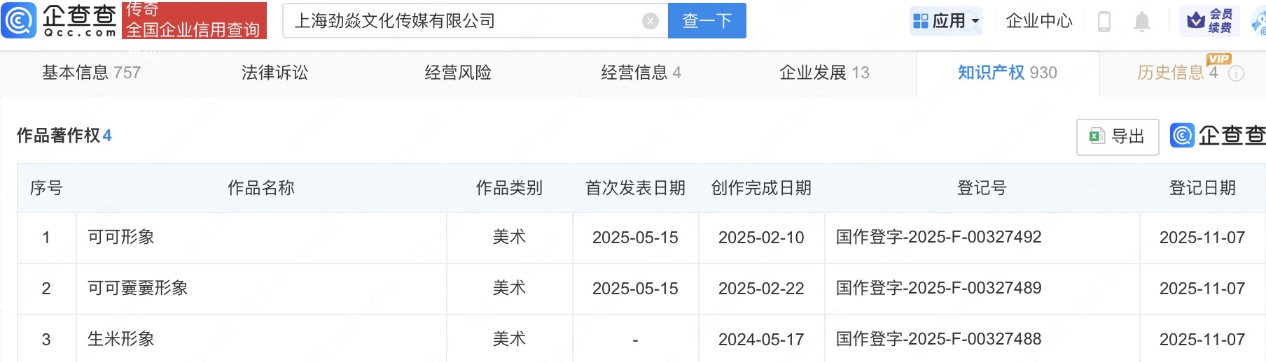 近日,上海劲焱文化传媒有限公司登记“可可嫑嫑形象”“可可形象”“生米形象”作品著作权赢正通,作品类别均为美术。该公司经营范围包括演出经纪、营业性演出等,由周深、张铭共同持股。据悉,周嫑嫑是歌手周深在推理综艺《开始推理吧第一季》中设计的虚拟角色,作为其饰演角色周可可的玩偶伙伴。此外,周深的粉丝名为“生米”。