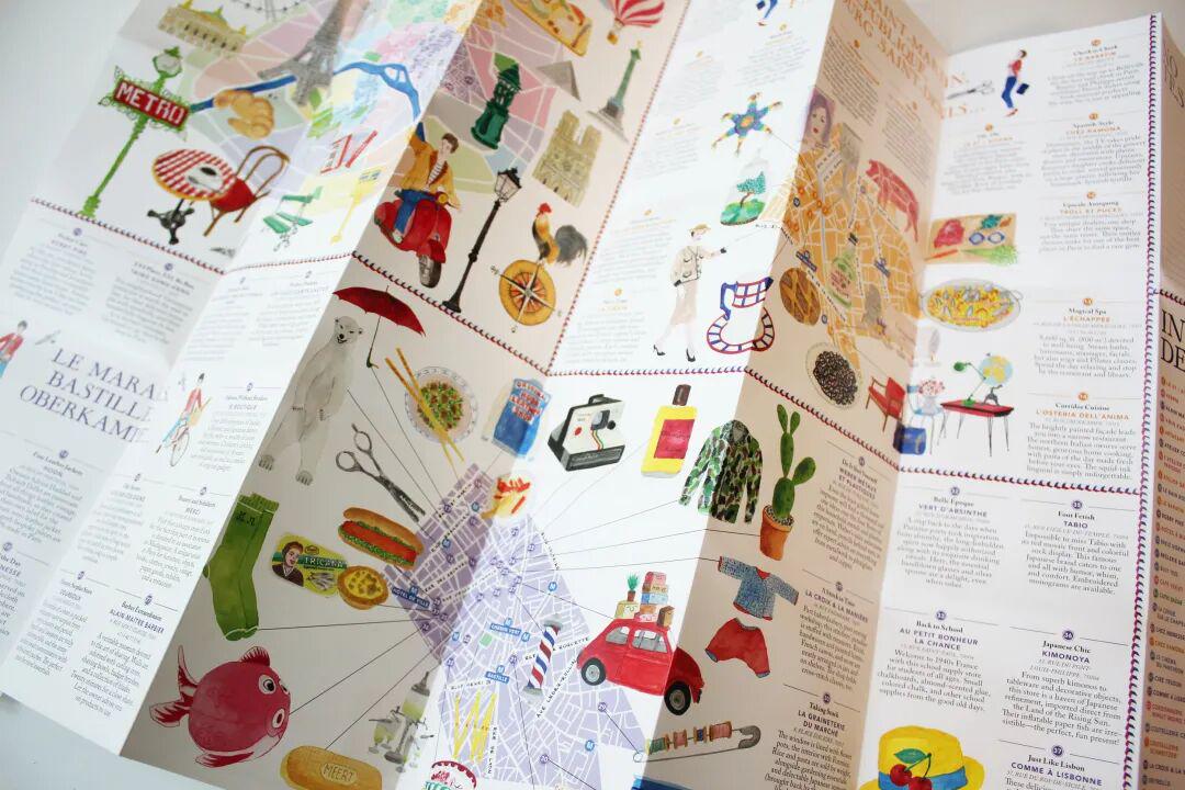 他绘制设计的巴黎旅行指南《Bonjour Paris!》,犹如这个城市的藏宝图,里面有真正巴黎人才知道的好地方股盈汇,后被Flammarion看中出版。